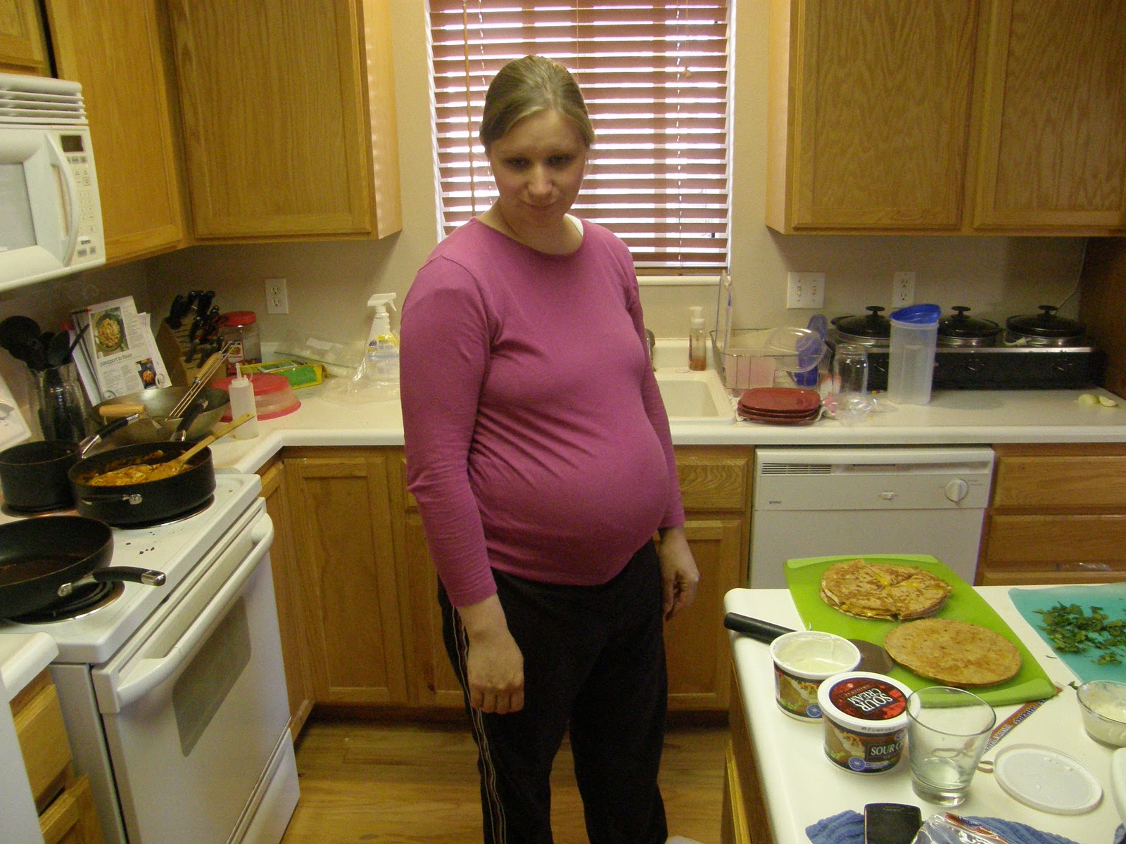 We finally got our 40' semi trailer here from Northern Nevada and one of the first boxes my wonderful husband got out for me was a box (or 2) of maternity clothes. After washing them all and being so excited to finally have them, I have quickly discovered that A LOT of them are not going to fit me too much longer!! I still have a ways to go, too. Scary thought that my maternity clothes won't fit too much longer. My sweet husband says, "it's ok, you can just wear a sheet, or we can make you a toga". Now isn't that GREAT!!